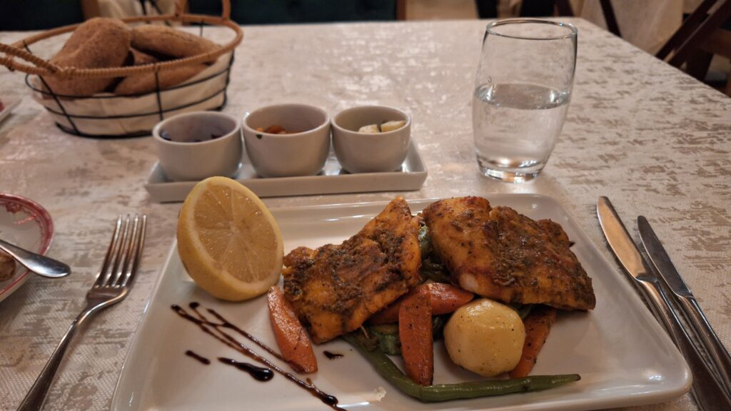 Continuing on the walking tour, we made it to the Hassan II Mosque, one of the largest mosques in the world. At night, it’s breathtaking. The minaret—the tallest in Africa—gets illuminated at night, its reflection shimmering on the Atlantic waves.